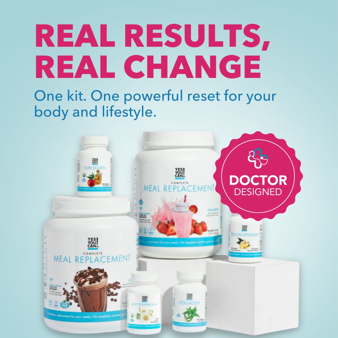 Everything you need for your health journey in one box. This physician-designed kit includes meal replacement shakes, natural supplements, drink mixes, protein snacks, and a shaker bottle. The three-phase program guides you from detox to transformation to maintenance. Replace two meals a day with their clinically proven shakes, add high-protein snacks, and watch results happen. No calorie counting. No complicated meal prep. Just real support for real weight management goals. Save $272 when you buy the complete kit.